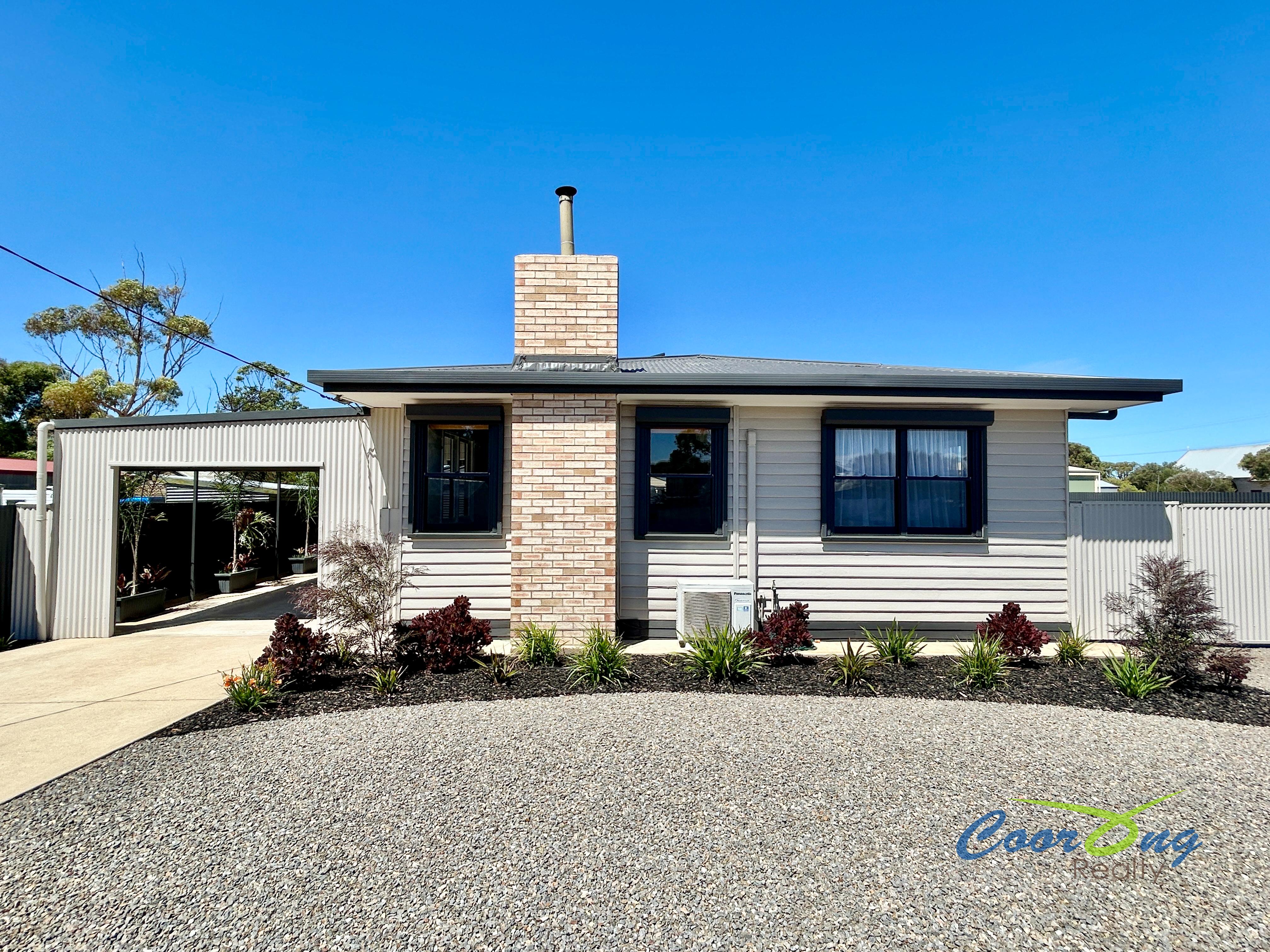Description: Situated on a large 1,011sqm lot, this is a very neat and tidy home featuring 3 good-sized bedrooms, two with ceiling fans. The lounge boasts a slow combustion fire, ceiling fan and reverse cycle air conditioner for all year-round climate control. Window roller shutters for added climate control and security. The bathroom is fresh with a rain shower and separate bath and a separate toilet adjacent to the laundry. The kitchen and eat in meals has ample cupboard space.