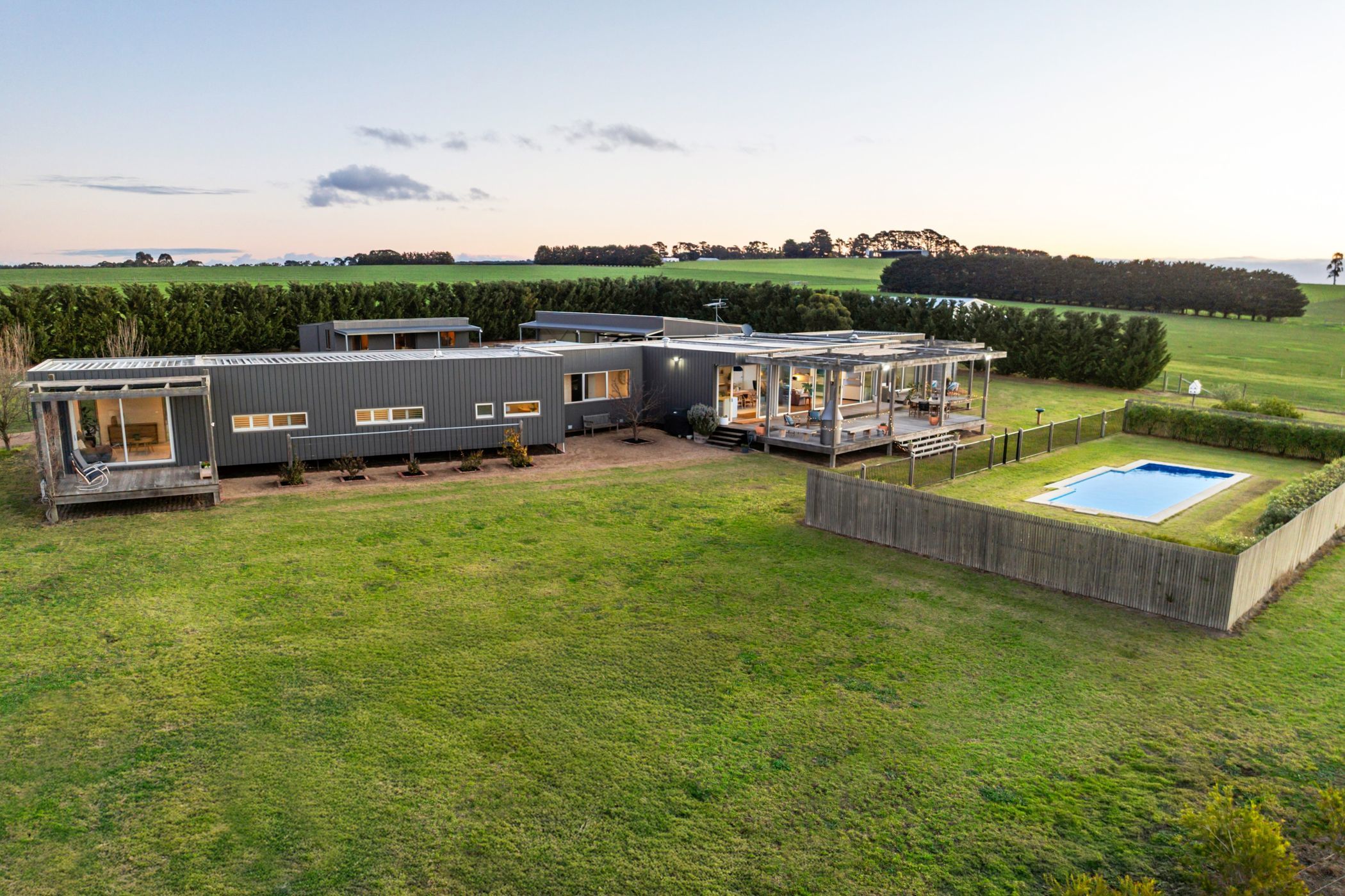 Covering 40 Ha / 99 acres (approx.), this exceptional lifestyle property enjoys incredible views and unmatched privacy, an easy 20 minute drive from Geelong. The architecturally designed family home is set well back from the road, enjoying 3 main bedrooms + separate office/study (ensuite & walk-in robe to master), 4th bedroom or kids' lounge room with split system heating & cooling, plus 2 bathrooms. A standalone studio is an added bonus, enjoying an open plan bedroom and kitchenette, adjoining ensuite and split system heating & cooling - perfect for visitors, older children and sleepovers.
