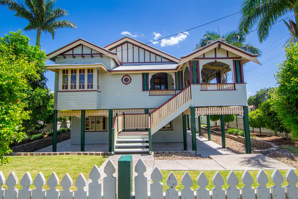 The home offers 5 bedrooms plus sleep out, 2 bathrooms, gorgeous stained glass windows, 12ft ceilings, original 1925 light fixtures, VJ walls, polished timber floors, original French doors, air conditioning throughout, gourmet kitchen with huge island bench and stainless steel appliances, multiple indoor and outdoor living areas, huge fully covered deck with views to the mountains, in-ground salt water swimming pool, 2 bay shed, all on a fully fenced 809m2 corner block.
