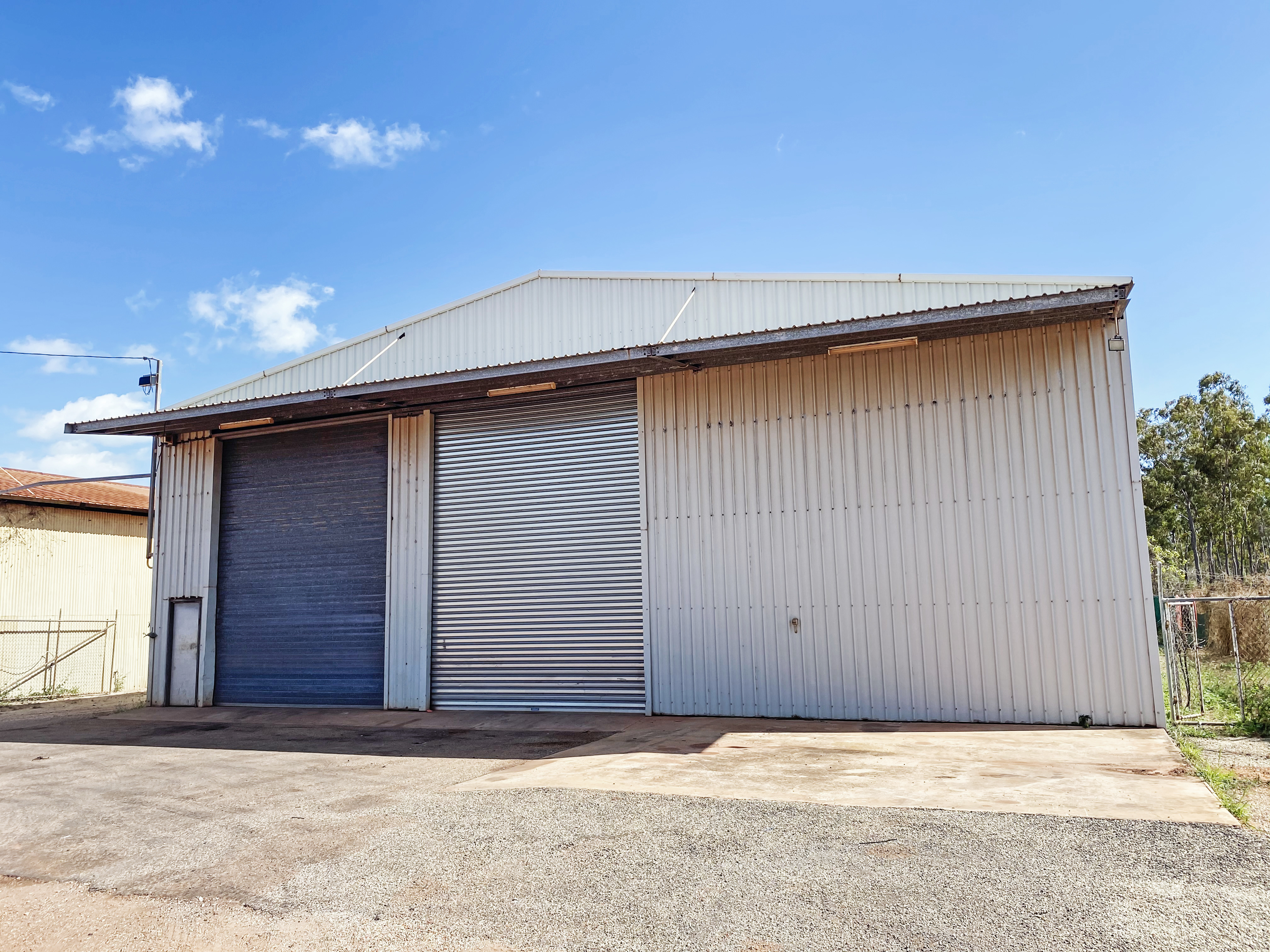 The shed is 18m x 24m and 9m high. The front has 2 large roller doors with access doors both left and right sides of the shed. There is external space for parking at the front and rear of the property.