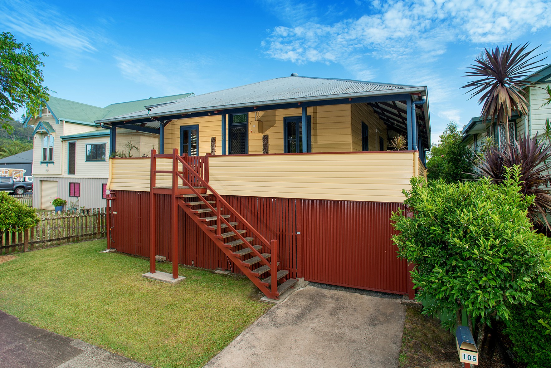The very functional kitchen is equipped with plenty of bench top space and cupboards and opens out onto to the covered back veranda. The spacious lounge room has a ceiling fan and newly installed 4.2 KW split system air conditioner. All bedrooms are spacious with mountains of room for a king bed + bedside tables and cupboards in each. The lounge and bedroom two have access to the side veranda through modern barrier screen doors great for security and those summer nights. All windows on the western wall feature modern Aluminium louvers keeping you cool in the afternoon. The bathroom has been completely renovated featuring a large vanity and bath/shower.