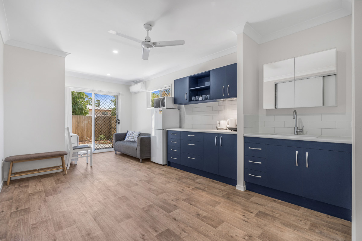 Furnished with flat screen television, open plan living and bedroom area with large built in robe and storage space. Air conditioned complete with screens and ceiling fan. Shared laundry with 2 washing machines
