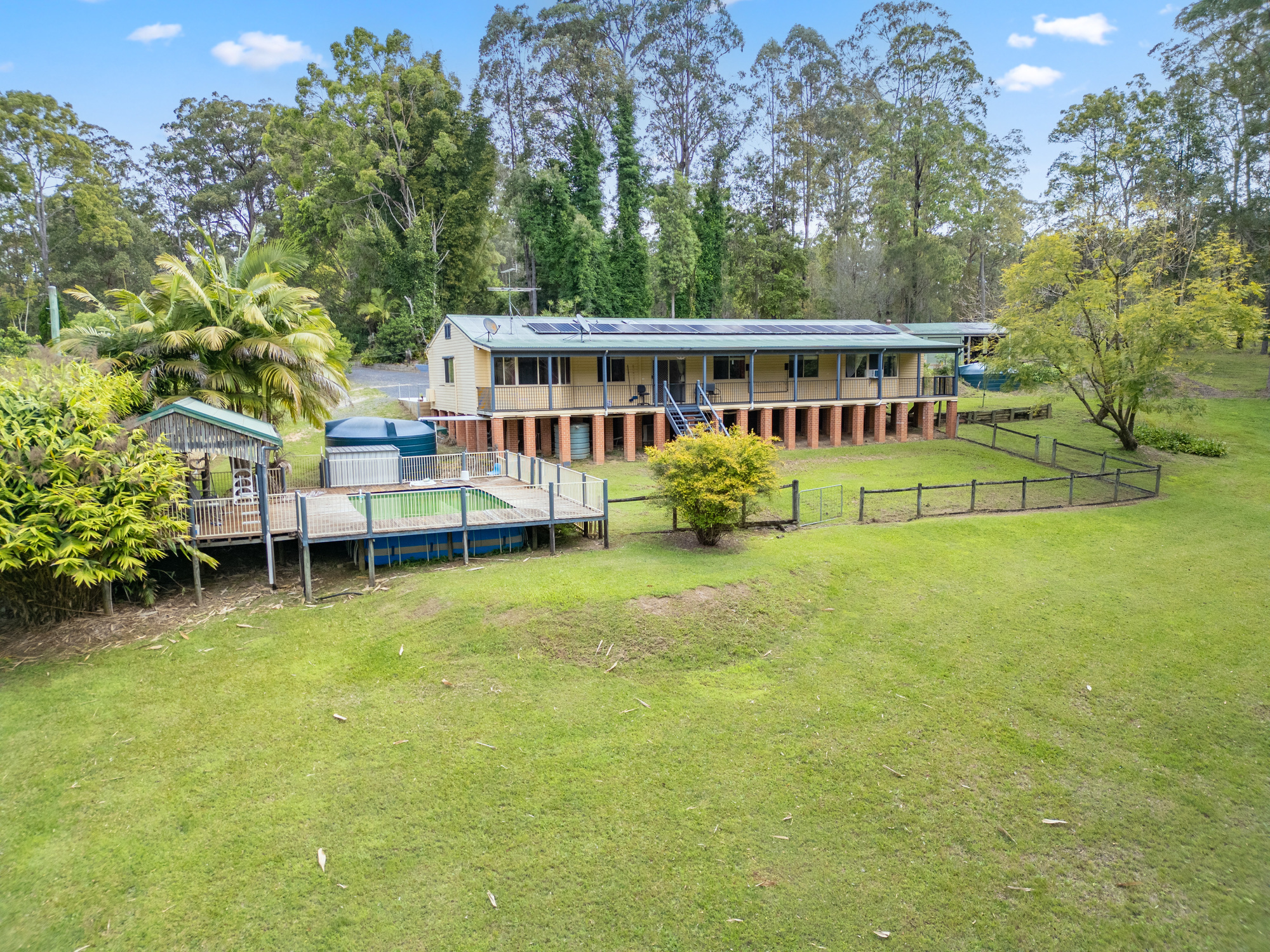 Walking outside to decked veranda overlooking tropical pool perfect for summer while surrounded by beautiful gardens, fruit trees, vegetables gardens, dam, four bay carport and four bay shed/man shed including bathroom, four fenced paddocks, perfect for all animals. Additional features, air-conditioner, ceiling fans, rainwater tanks over 54,000ltrs, StarLink, 20 solar panels, septic and more.